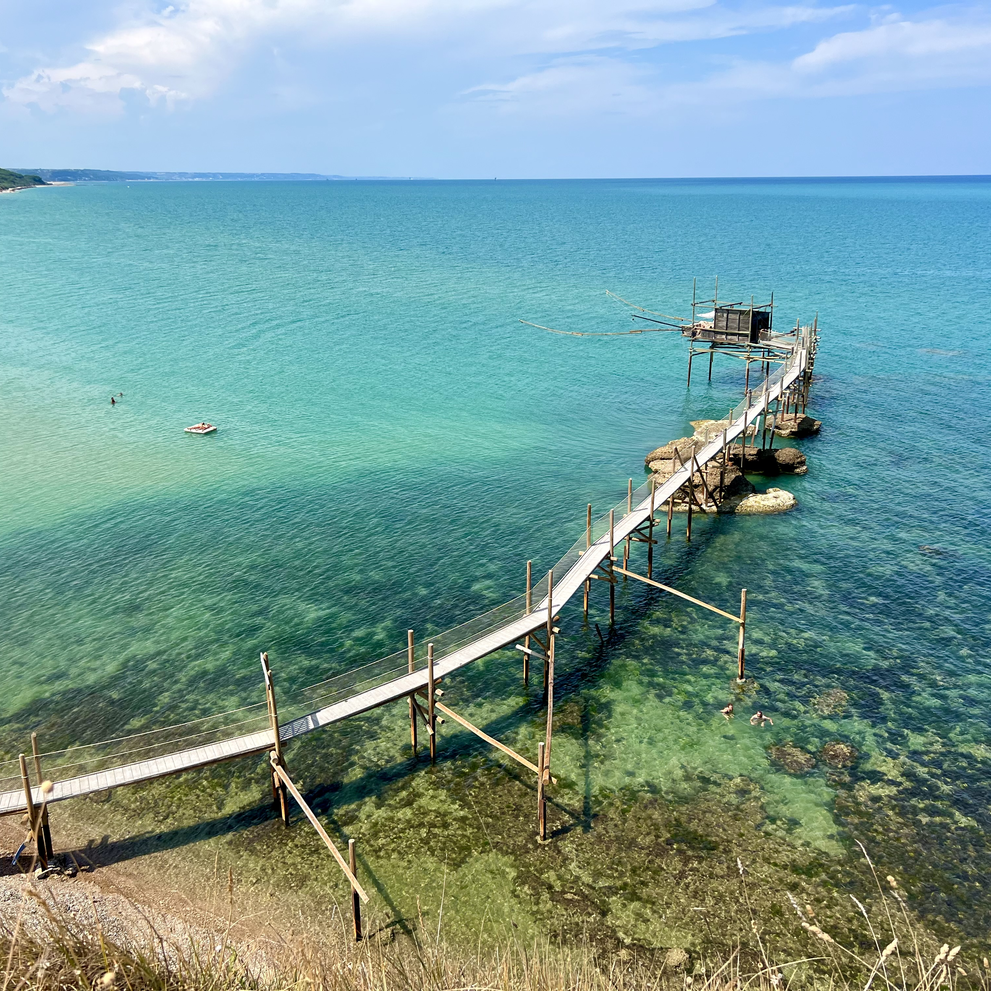 La Costa sud dell'Abruzzo è caratterizzata dalla presenza di queste antiche palafitte, i TRABOCCHI, che venivano utilizzate per la pesca da terra. Oggi sono dei Musei a cielo aperto ed alcuni sono stati trasformati in ristoranti che sembrano galleggiare sul mare cristallino.