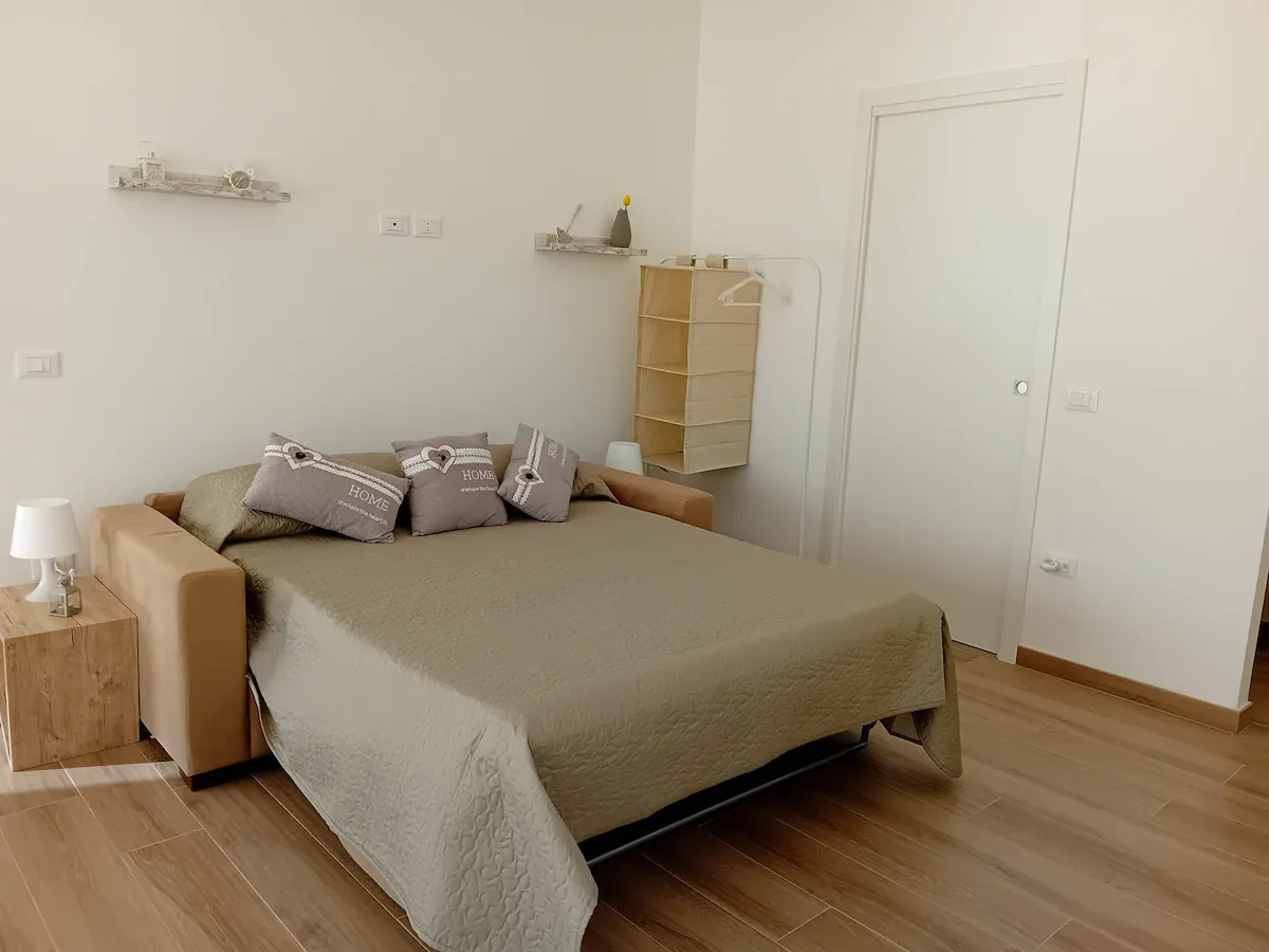 Sulla collina teatina, a 5km dal litorale e a 30 minuti di auto dall'entroterra montano, una vacanza all'insegna della tranquillità in un ambiente comodo e raffinato, con la possibilità di immergersi nel cuore dell'Abruzzo. La casa a piano terra è composta da soggiorno con divano letto matrimoniale, cucina attrezzata, camera matrimoniale, bagno e ripostiglio.