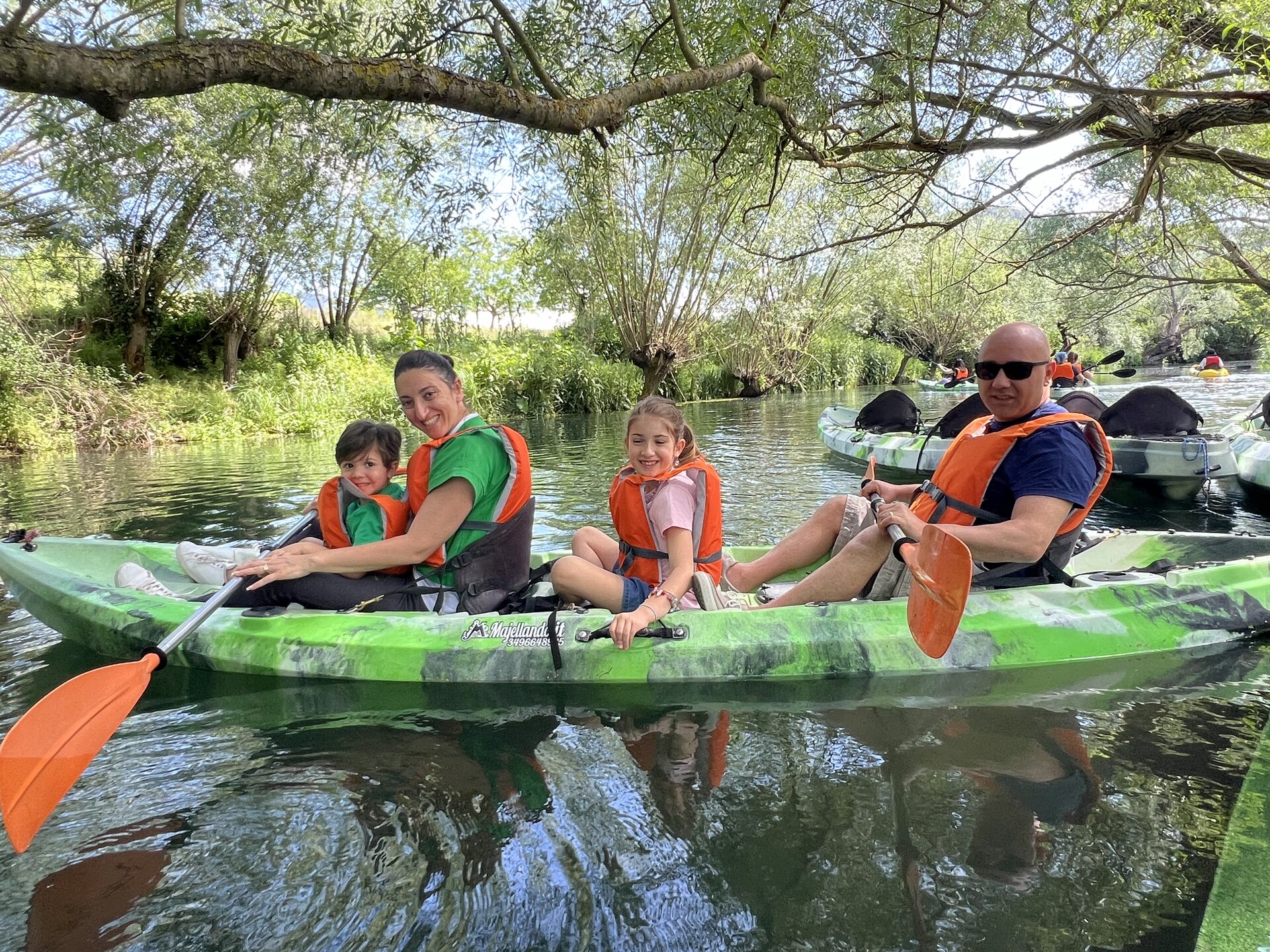 Disposizione sulla canoa: la sistemazione sulle canoe sarà gestita dalle guide. In canoa si sta in 2 o 3 persone (2 pagaiano e in mezzo il bimbo) ma se c'è un bimbo più piccolo si potrebbe stare anche in 4 (di cui 2 bimbi piccoli) – Per i partecipanti particolarmente esperti sono disponibili canoe monoposto. Se siete 2 adulti e 2 bimbi, o 2 adulti e 3 bimbi, o 2 adulti e 4 bimbi, o 1 adulto e 2 bimbi... e in altri casi, LE GUIDE TROVERANNO SEMPRE LA SOLUZIONE ADATTA A VOI. Le guide non saranno in canoa con voi ma vi guideranno per tutto il percorso su una loro canoa ed in caso di necessità (presenza di famiglia numerosa con tanti bimbi, persone particolarmente timorose..) si può salire in canoa con uno o più di uno dei nostri accompagnatori.