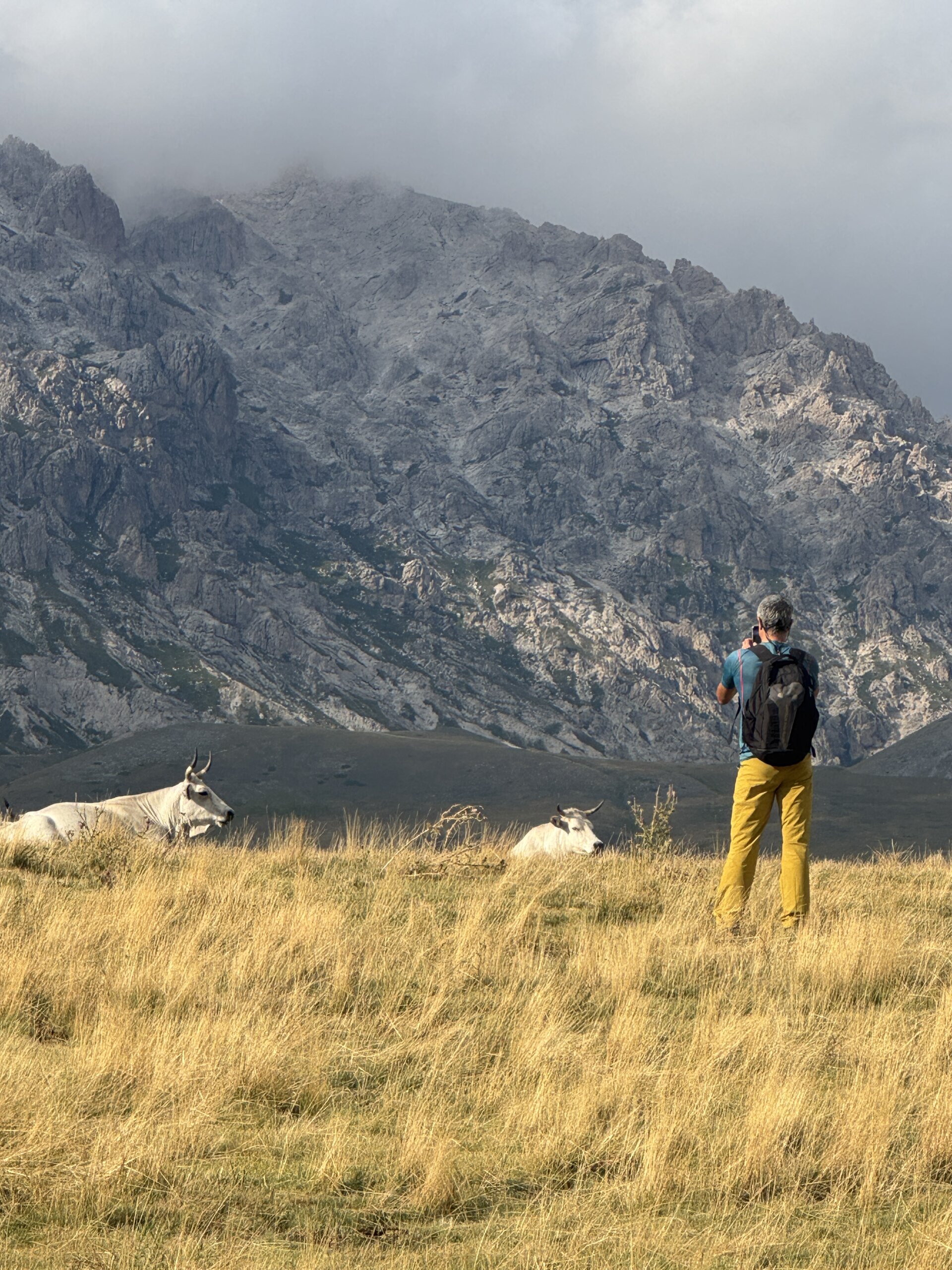 Quando il sole comincia a calare, il Gran Sasso si tinge di sfumature calde, rosa e oro che accarezzano le rocce, mentre l’aria si riempie del profumo dell’erba e del suono dei pensieri che si fanno più chiari.